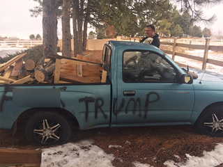 On Thursday night, someone vandalized his Toyota Tacoma, which was parked outside his home off East Sundance Trail in Parker. He woke up Friday morning to find "F-Trump" and "Jerk" spray painted on the body, his tires slashed, mirrors shattered and the inside seats slashed up with a sharp weapon.