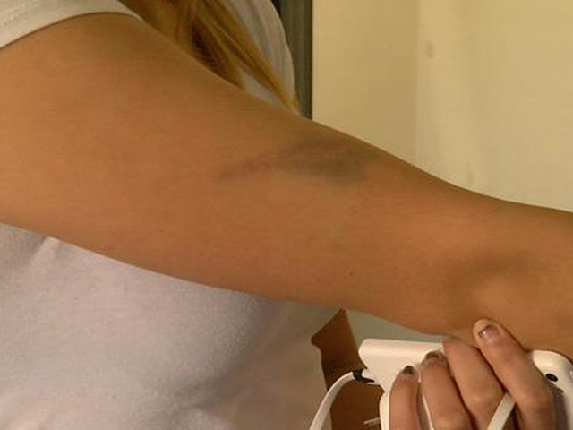 DENVER - She didn't want her face shown but her scars are visible.