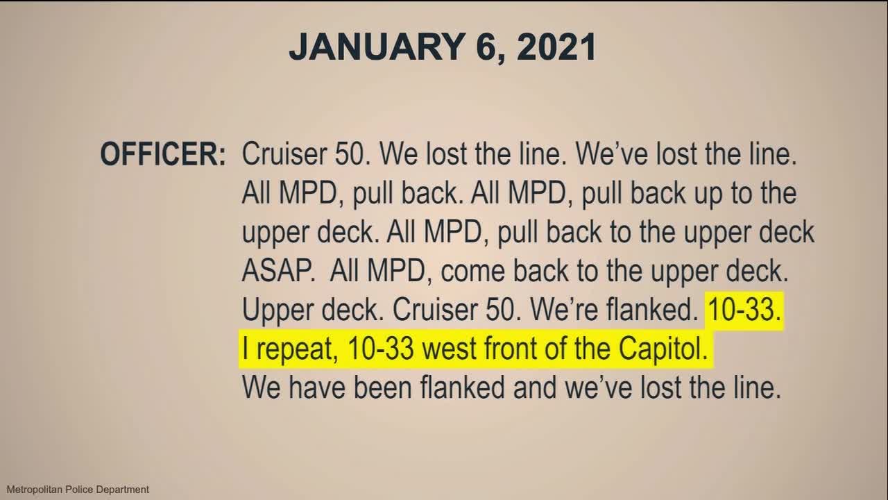 Neguse then detailed and played clips of the president’s speech that day, which happened just before the group of rioters marched to the Capitol and started breaching police barriers and fighting with outnumbered officers.